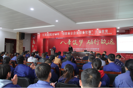 2019年11月15日,由國(guó)潤(rùn)機(jī)械組織的“預(yù)防非公企業(yè)職務(wù)犯罪”主題教育講座,在江蘇國(guó)潤(rùn)機(jī)械制造有限公司多功能報(bào)告廳舉行。 徐州市經(jīng)開(kāi)區(qū)人民法院院長(zhǎng)劉偉、執(zhí)行局局長(zhǎng)謝龍…...